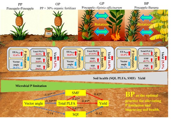 近日,中国热科院南亚所系统揭示了轮作和有机肥施用在缓解连作菠萝园土壤微生物磷限制、提升土壤健康与产量的关键作用,为热带农业可持续发