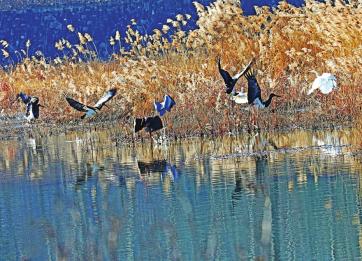在垣曲县亳清河长直段,一群群黑鹳、白鹭、苍鹭在河道两边觅食、嬉戏。鲁国林摄 近日,山西历山国家级自然保护区频传喜讯:原麝与华北豹的